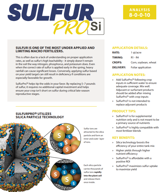 Nano Pro + Rosens Tarus Sulfur . The only highly effective foliar Sulfur product we have had results with